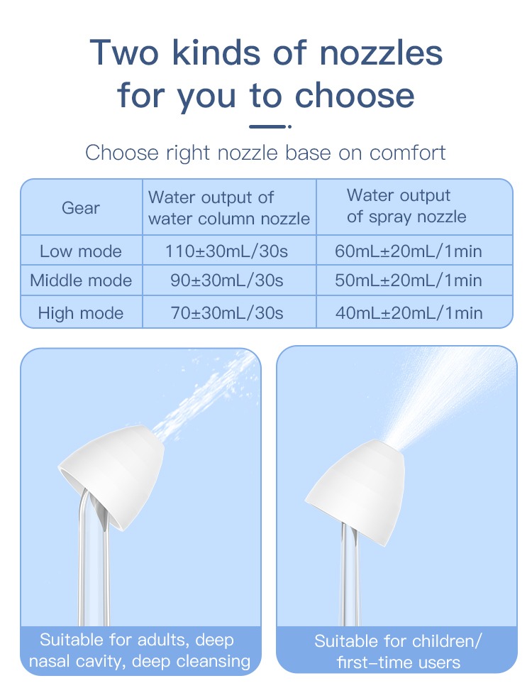 【نصيحة قياسية】ري الأنف يحتوي على طرف رش قياسي. يمكن رش فوهة الرش على جميع أجزاء تجويف الأنف. الفوهة القياسية مناسبة لشطف الممرات الأنفية. منظف الأنف خفيف بما فيه الكفاية بحيث يمكنك وضعه بسهولة في حقيبة السفر الخاصة بك وهو الرفيق المثالي لرحلتك. |