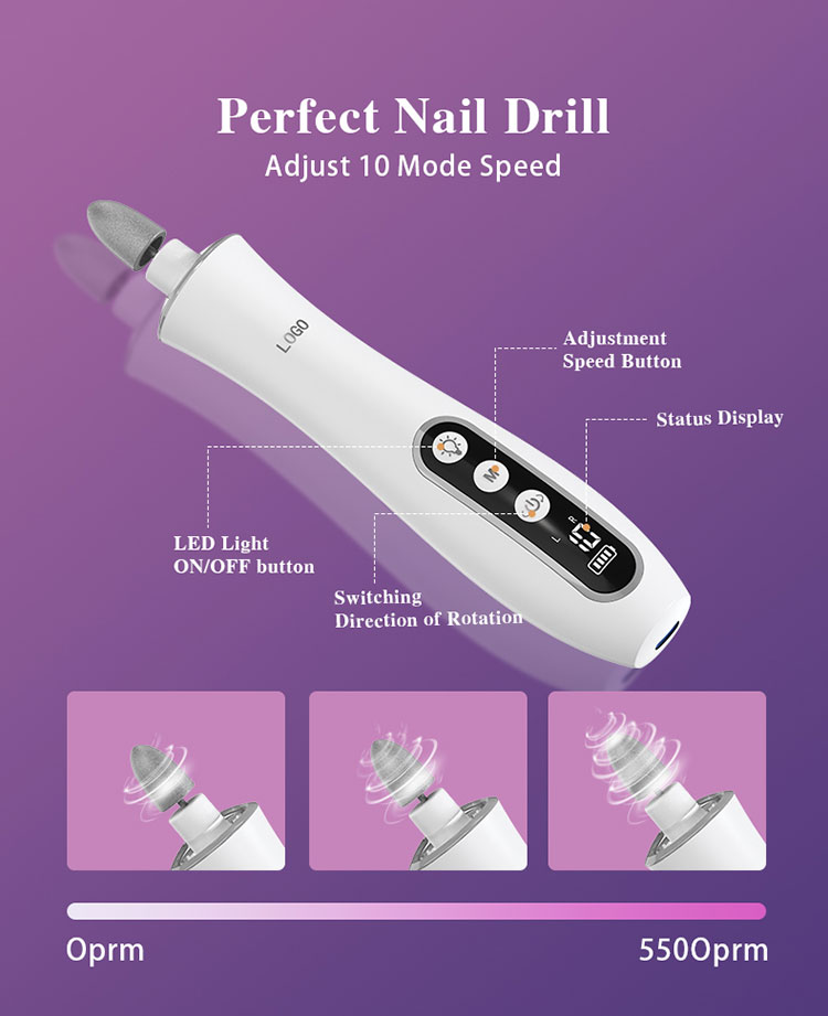 【10 SPEED & Dual Rotations】Experience the power of our nail file electric drill kit, featuring 10 progressive speed settings and versatile clockwise and counter-clockwise rotations. The efile nail dril guarantees precise filing on thick fingernails and toenails and is tailored for all skin types.