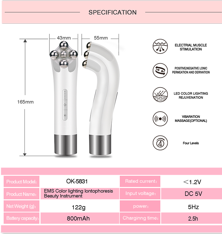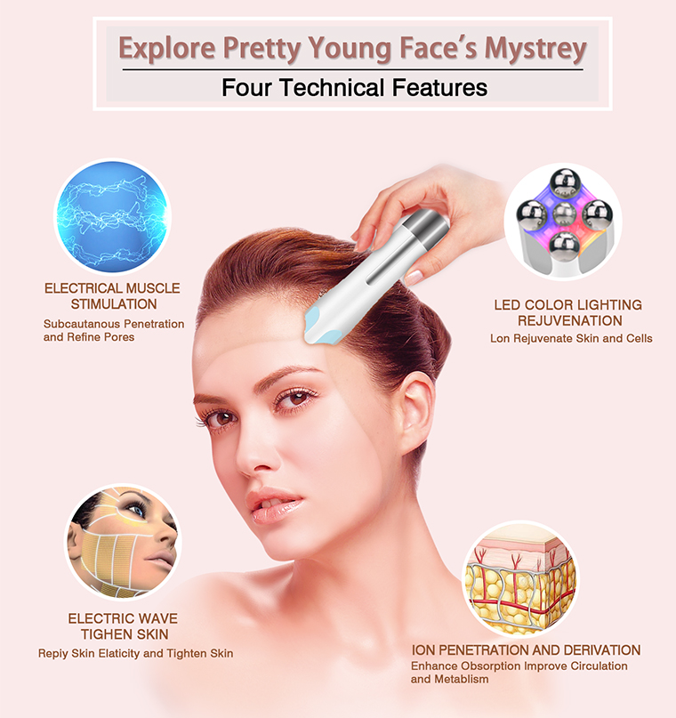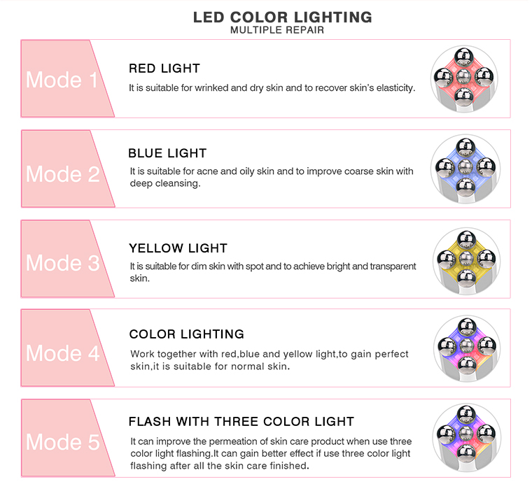 ما هي المنافع؟ -- جهاز التجميل هو جهاز متعدد الوظائف لمكافحة الشيخوخة يتضمن تقنية الترددات الراديوية (RF) مع العلاج بالضوء الأحمر/الأزرق، وEMS لتقليل الخطوط والتجاعيد، وتحسين اختراق الجلد، وقدرات الامتصاص، وما إلى ذلك.