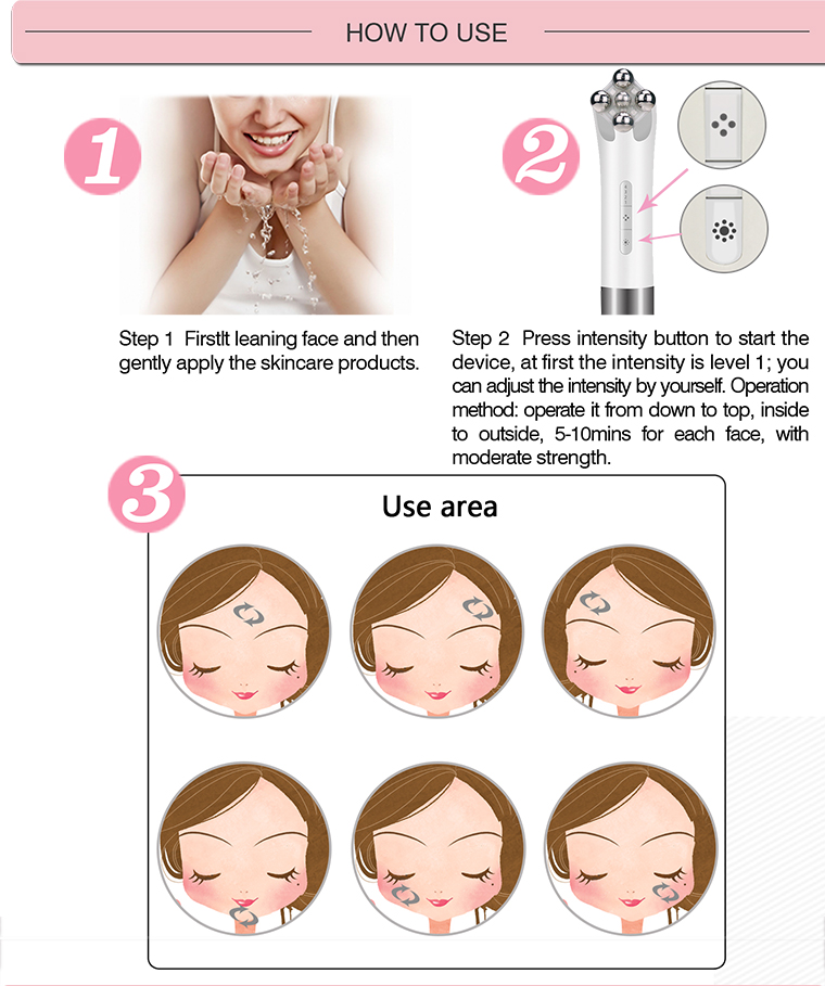 تدليك الوجه عالي التردد - في أوضاع التنظيف، والاختراق، والرفع، والعناية بالعين، حيث يتميز بإحساس اهتزاز عالي التردد للمساعدة في تحفيز حيوية الخلايا وتعزيز الدورة الدموية. لذا فهو في الواقع أيضًا مدلك للوجه.