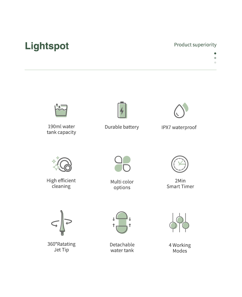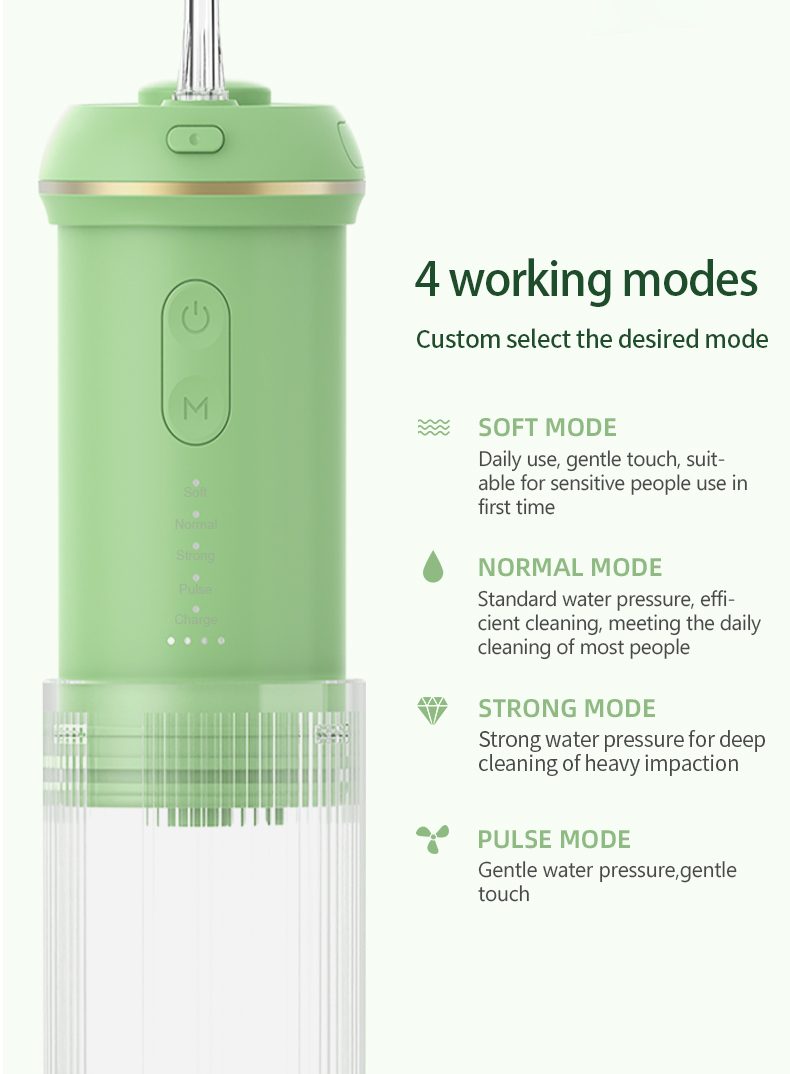 تنظيف عميق بضغط قوي: يعتمد جهاز تنظيف الأسنان بالماء على أحدث تقنية النبض لتقديم 4 أوضاع مع نطاق ضغط بين 30-90 رطل لكل بوصة مربعة ومعدل نبض 1400-1800 مرة / دقيقة، لتقديم مياه عالية الكثافة تنظف 99.99٪ من إجهاد الأسنان، مصممة خصيصًا لالتهاب اللثة والأقواس.