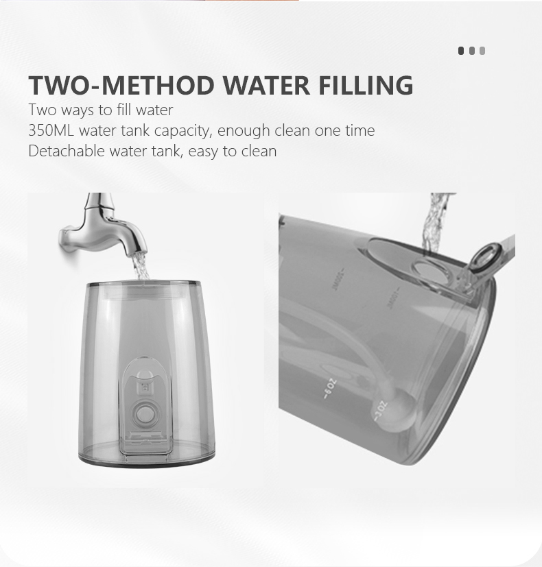 يتميز جهاز تنظيف الأسنان المائي هذا بخزان مياه مطور بسعة 350 مل، وهو ضعف سعة الموديلات القديمة الأخرى، مما يلغي الحاجة إلى إعادة التعبئة المتكررة ويجعل تنظيف الفم أكثر ملاءمة وكفاءة.