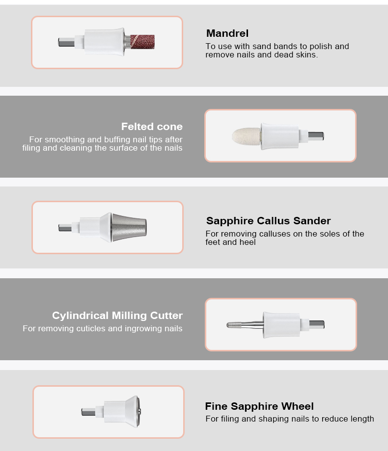 - مجموعة أظافر مكونة من 32 قطعة: يأتي مبرد الأظافر الكهربائي المحمول الاحترافي مع 8 رؤوس مثقاب أظافر فاخرة، و20 شريط صنفرة، وصندوق تخزين مغناطيسي لسهولة التنظيم. بالإضافة إلى ذلك، يتم توفير واقي من الغبار للحفاظ على النظافة وضمان تجربة مانيكير وباديكير خالية من الفوضى